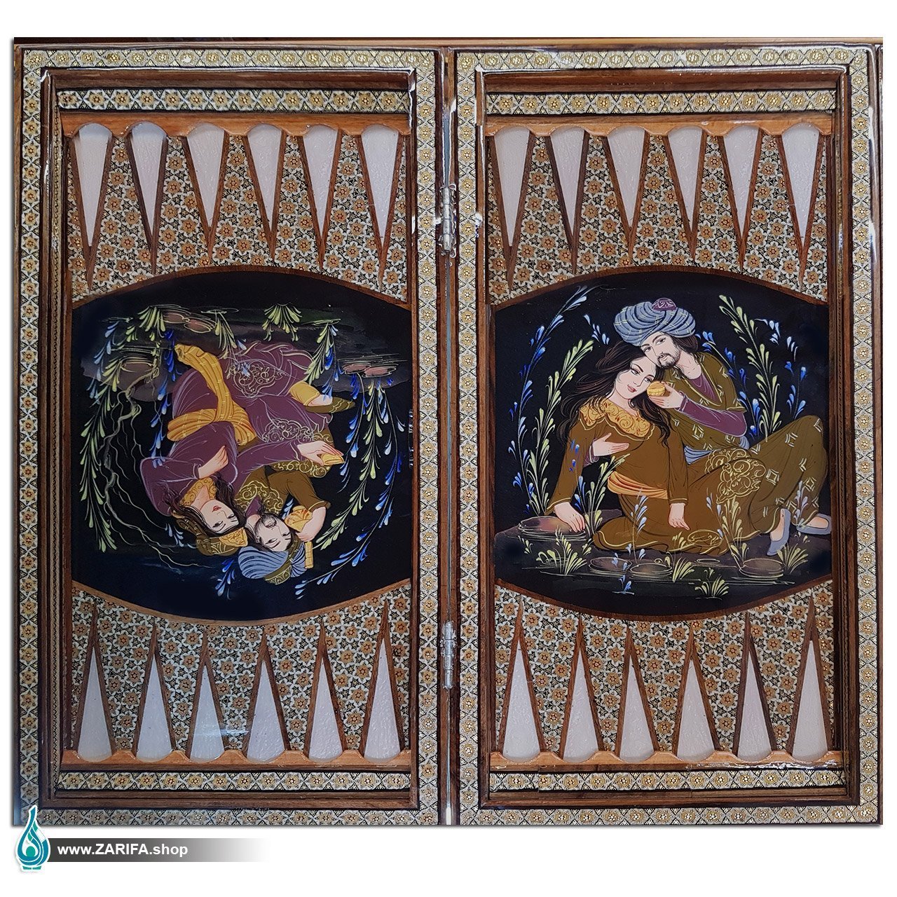 تخته نرد و شطرنج خاتم با نگارگری مجلس بزم با 18 چهره 50*50