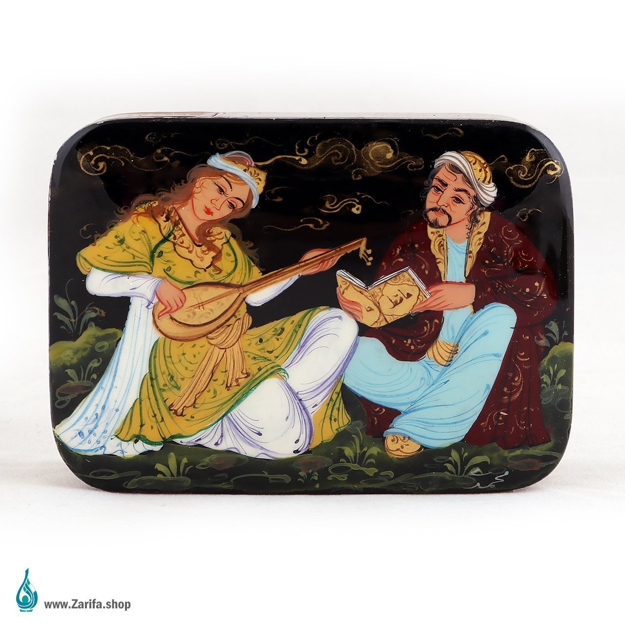 جعبه خاتم با مینیاتور لیلی و مجنون زمینه مشکی