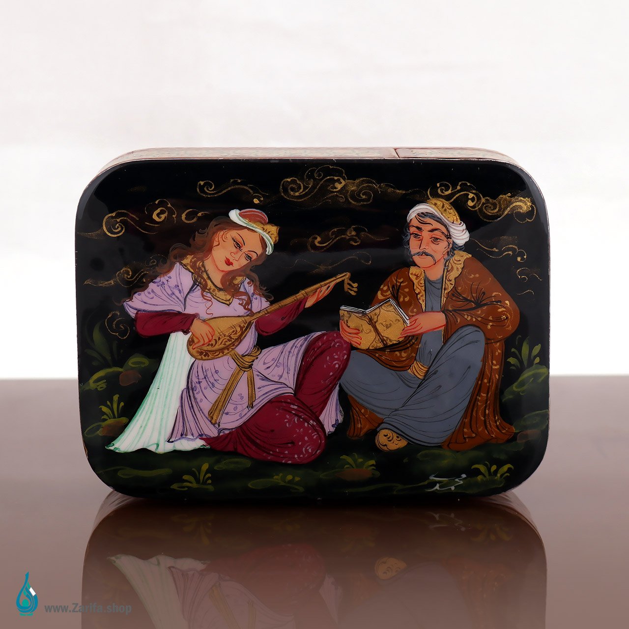 جعبه خاتم با نگارگری لیلی و مجنون زمینه مشکی