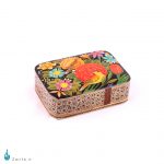 جعبه پاسوری خاتم با نگارگری گل و مرغ نارنجی: