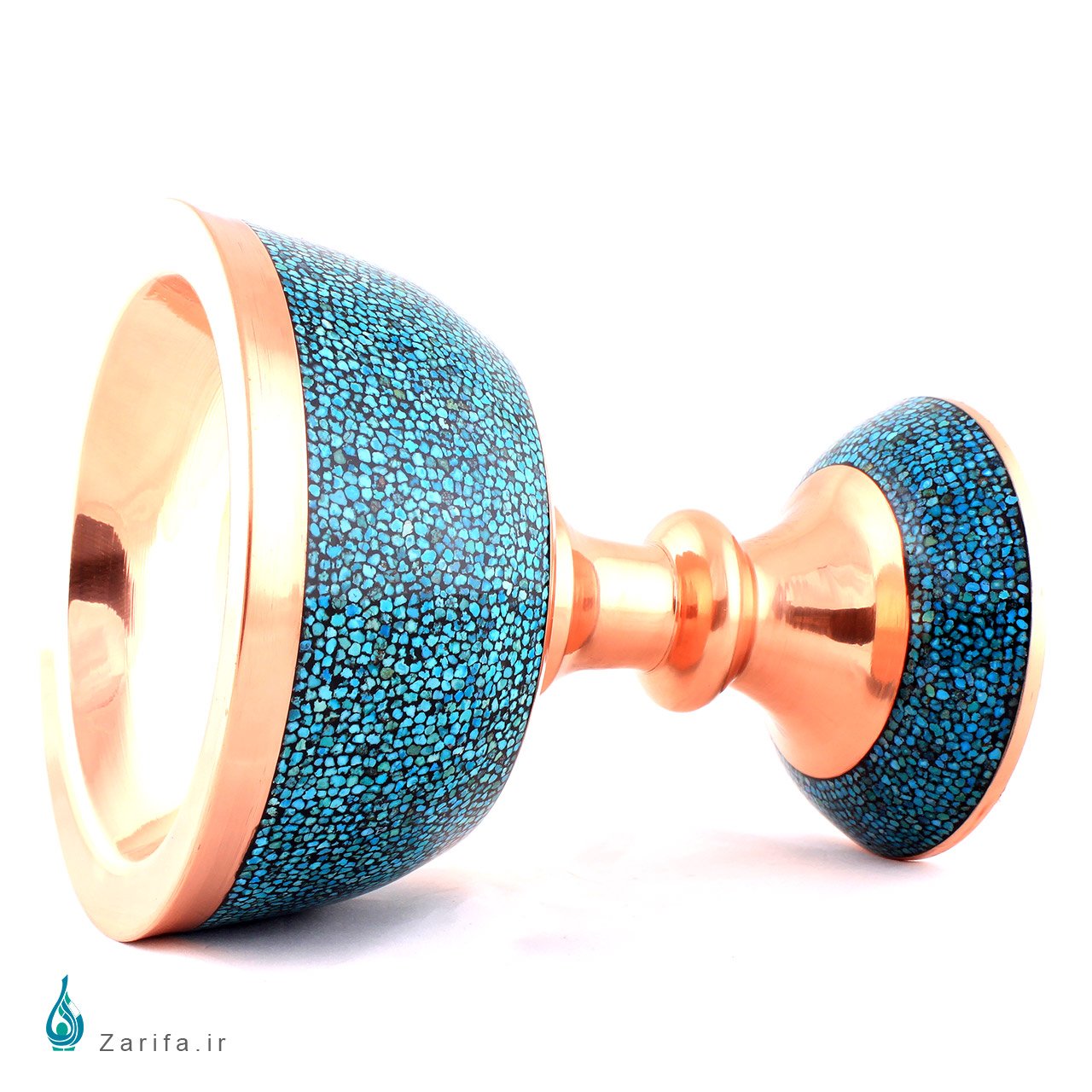 این سنگاب فیروزه کوب با پایه ی 24 سانتی متری به خاطر جلای خاص آن برای قرار گرفتن در ویترین بسیار مناسب است. علاوه بر این سنگاب فیروزه کوبی شده می تواند به عنوان یک میوه خوری بسیار زیبا برای پذیرایی استفاده شود، وجود سایر محصولات فیروزه کوبی اصفهان و ست های کامل پذیرایی، از ویژگی های این دسته محصول است. این یکپارچگی قطعا برای افرادی که پذیرایی ویژه، همراه با دقت و ظرافت را در نظر دارند اهمیت زیادی دارد.