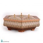 خاتم‌کاری از هنر‌های قدیمی، شکیل و پرطرفدار در بین مردم است. هنوز هم طرح و نقش های سنتی، با حال و هوای خانه هایمان سازگاری دارند. لذت میزبانی با شکلات خوری خاتم طعم شکلات را هم شیرین تر می کند.شکلات خوری بسیار زیبای خاتم که در هندسه ای شش ضلعی عرضه شده به واسطه تقارن مرکزی و زیبایی ظرف، زیبایی بیشتری می یابد. این ظرف که در تمام قسمت ها پوشش خاتم دارد. محصولی منحصر به فرد و بسیار زیبا و ارزنده است.